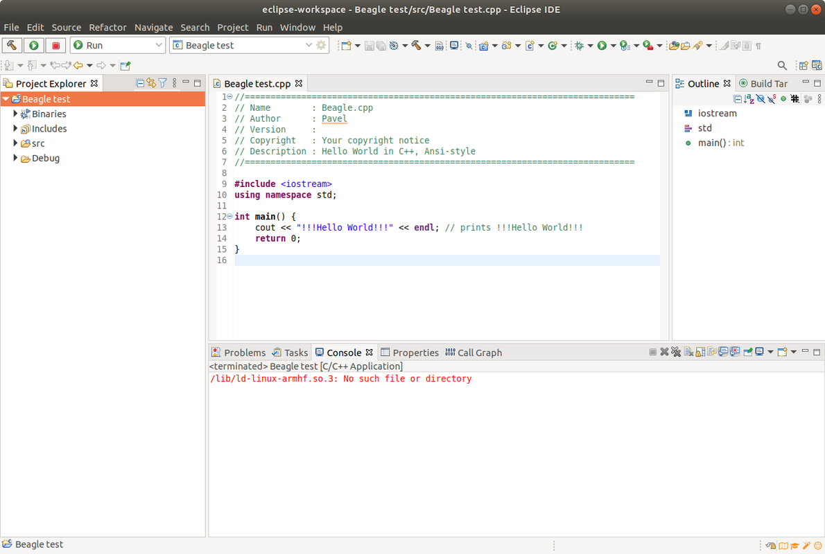 Resolved. -static isn't compiler, but linker option. Regards. On Wednesday, September 23, 2020 at 4:18:17 PM UTC+2, Pavel Yermolenko wrote: > > Here is execution in eclipse: > Eclipse execution > <https://i.postimg.cc/Kc5L3Wkk/Screenshot-from-2020-09-23-15-46-33.png> > > Here is Eclipse compiler options: > Compiler options > <https://i.postimg.cc/QMpVGBc9/Screenshot-from-2020-09-23-15-47-45.png> > > On Wednesday, September 23, 2020 at 4:12:49 PM UTC+2, RobertCNelson wrote: >> >> >> >> On Wed, Sep 23, 2020 at 8:56 AM Pavel Yermolenko <[email protected]> >> wrote: >> >>> Hello, >>> >>> In his book "Exploring BeagleBone", Derek Molloy provides example of >>> executing of the source code that built on host machine using cross >>> toolchain. For that QEMU emulator must be installed on host machine. >>> >>> In terminal it works fine when a source is built with *-static* option: >>> >>> pavel@ALABAMA:~/bbb_cross_toolchain_code$ arm-linux-gnueabihf-g++ >>> -static testcross.cpp -o testcross >>> pavel@ALABAMA:~/bbb_cross_toolchain_code$ ./testcross >>> Testing cross compilation for armhf >>> pavel@ALABAMA:~/bbb_cross_toolchain_code$ >>> >>> But in Eclipse it doesn't work although I added *-static* in >>> cross-compiler options. >>> >>> [image: Screenshot from 2020-09-23 15-46-33.png] >>> >>> [image: Screenshot from 2020-09-23 15-47-45.png] >>> >>> Any comments ? >>> >> >> For some reason the images didn't show up in mail.. >> >> /lib/ld-linux-armhf.so.3: No such file or directory >> >> Regards, >> >> -- >> Robert Nelson >> https://rcn-ee.com/ >> >