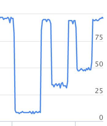 734.9/s Avg: 67ms Min: 18ms Max: 331ms, CPU util: 50%