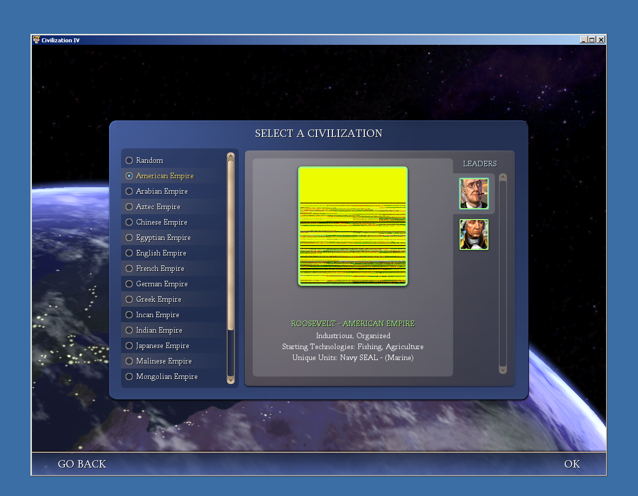 For example, in Civilization IV it results in character portraits rendering