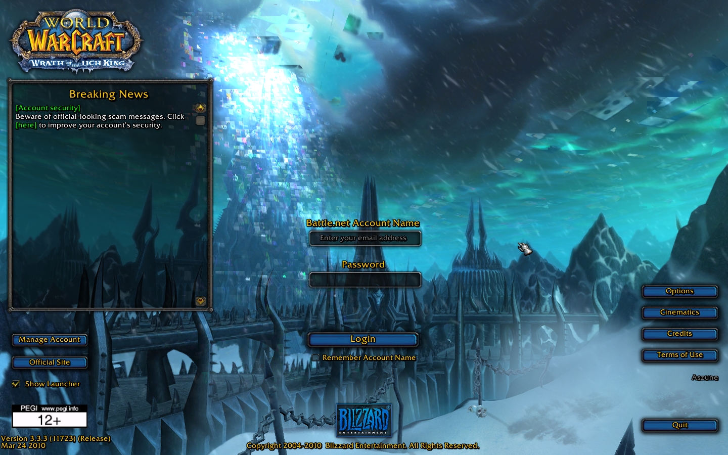 The login screen for World of Warcraft contains a "snow scape". However, some