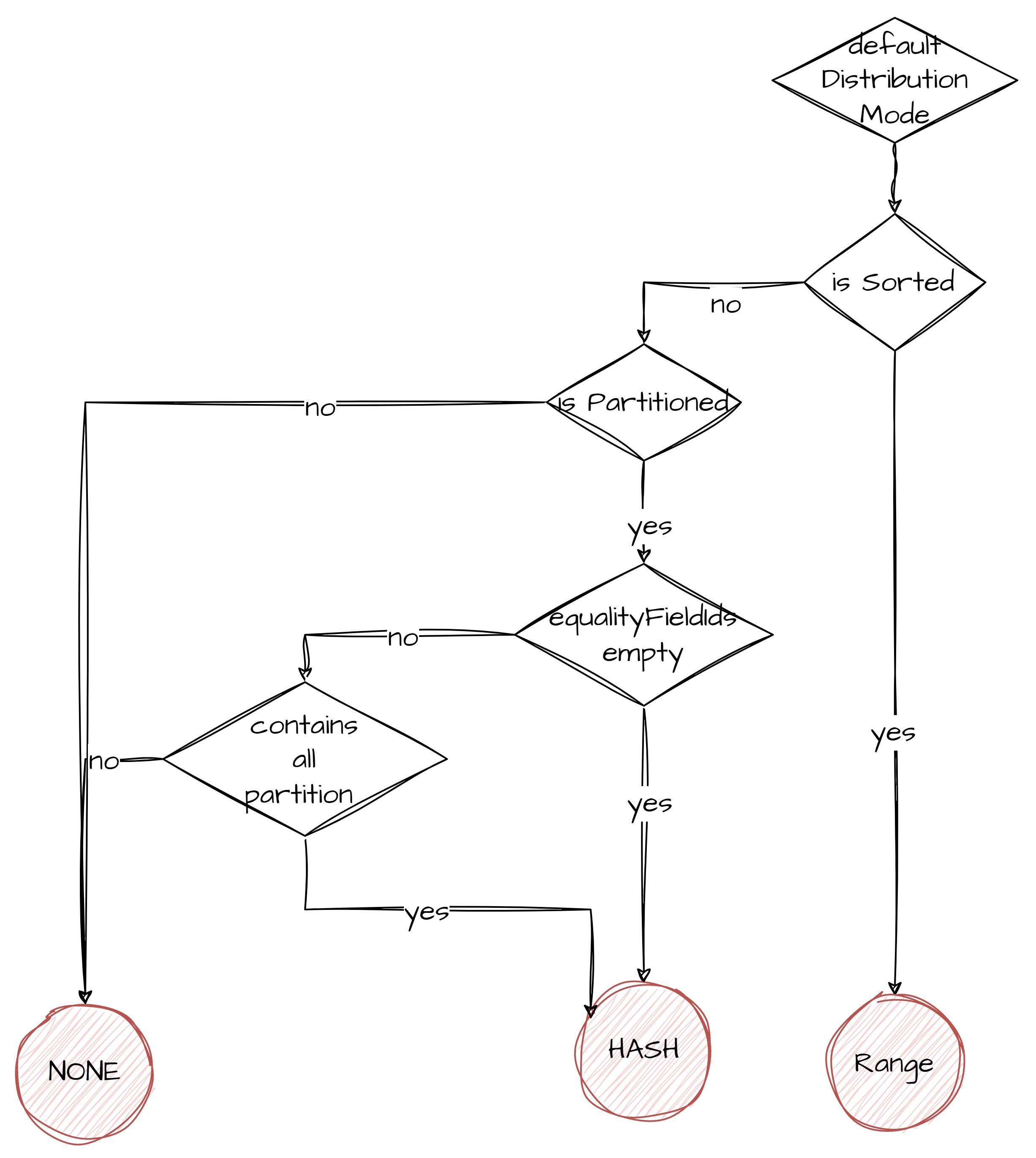 + public DistributionMode distributionMode(List<Integer> equalityFieldIds) {
