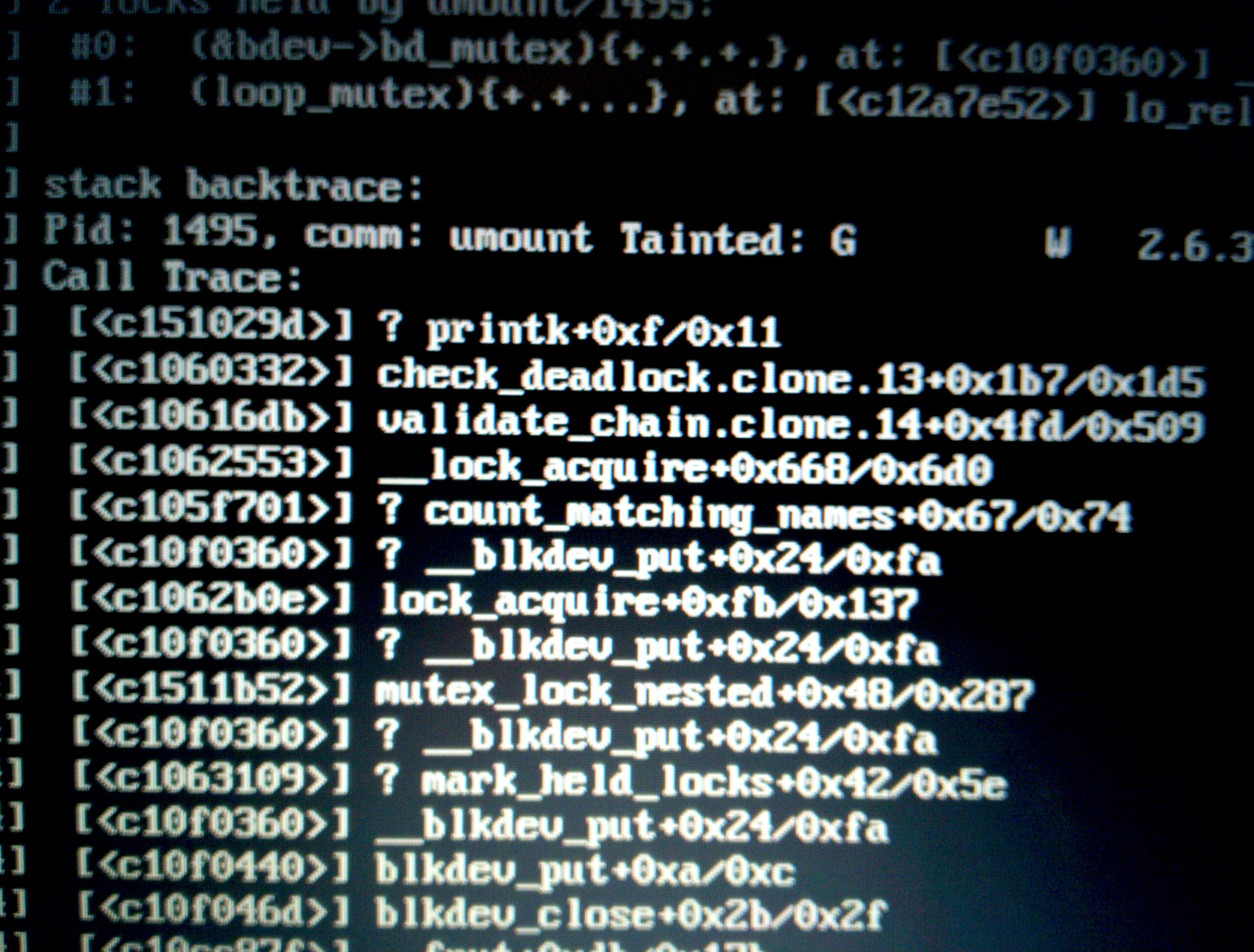 On all three, the install completes successfully, but crashes on exit -- requiring a manual power cycle to complete the reboot into the installed OS. This is on a Lenovo S10-3t which should be compatible with MeeGo Netbook UX. The installation image resides on a SD card plugged into the front slot. Since there wasn't a trace of the crash in the logs, the best I could do is capture a screenshot with a camera: http://nielsmayer.com/meego/photo2011.02.16_09.15.05.37.jpg http://nielsmayer.com/meego/photo2011.02.16_09.15.16.84.jpg (had to capture two images so as to be able to read the text and see most of the backtrace). As I notice the crash occurred during an unmount -- perhaps it doesn't like installing the image from the SD card slot? Also, this is clearly a bug which I should file, if I could figure out what category this bug belongs in. Are such installer issues considered "core" since it's ultimately a problem with umount? Would it go under "Netbook UX" since it's specific to the netbook install (but has nothing to do with user experience and also happens on Intel's "Tablet UX"). And shouldn't there be a specific category for installation bugs like this? Niels http://nielsmayer.com _______________________________________________ MeeGo-dev mailing list [email protected] http://lists.meego.com/listinfo/meego-dev http://wiki.meego.com/Mailing_list_guidelines