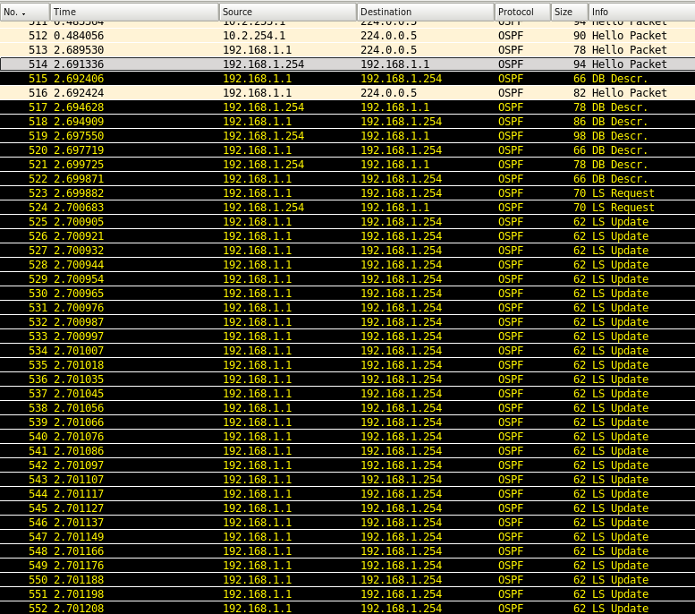 As soon as it gets an LS request from its neighbor (.254) you get the