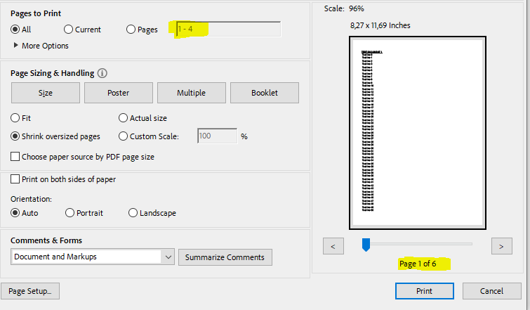 pdf to a 6 page pdf we now can only choose to print a specific page